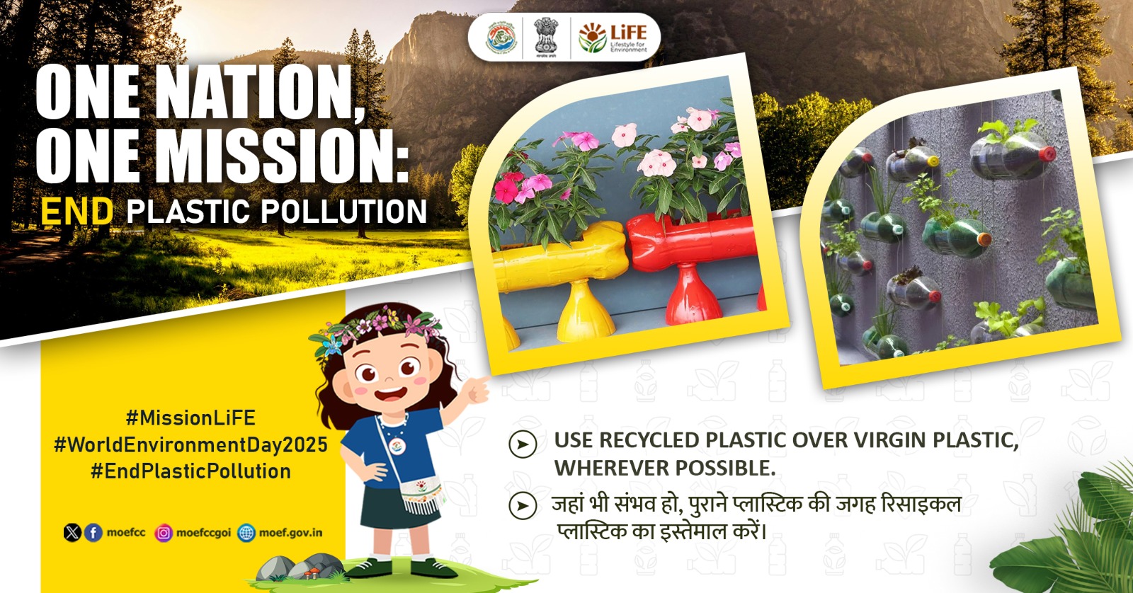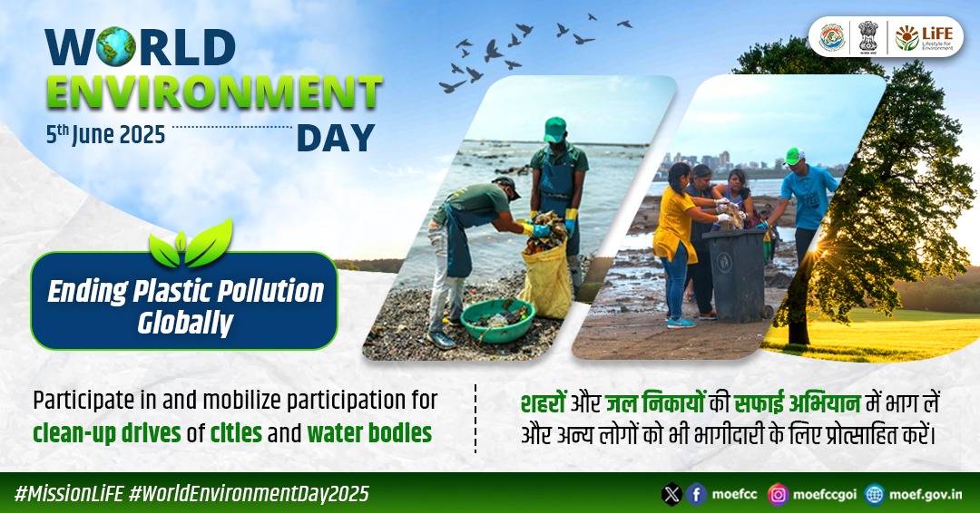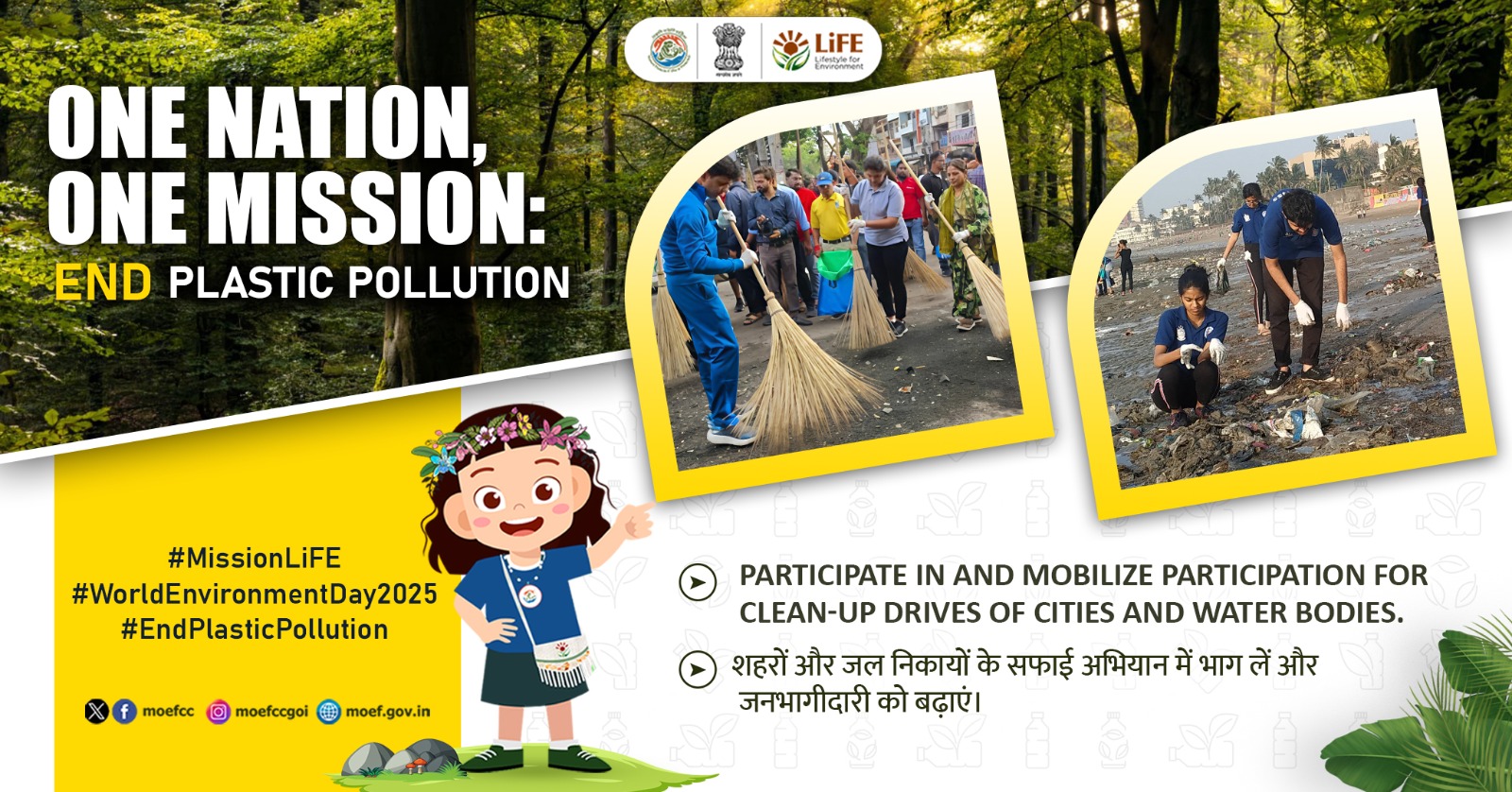 One Nation, One Mission: #EndPlasticPollution! Step up for clean-up drives in your city and water bodies. Together, we can restore nature. #MissionLiFE #WorldEnvironmentDay2025