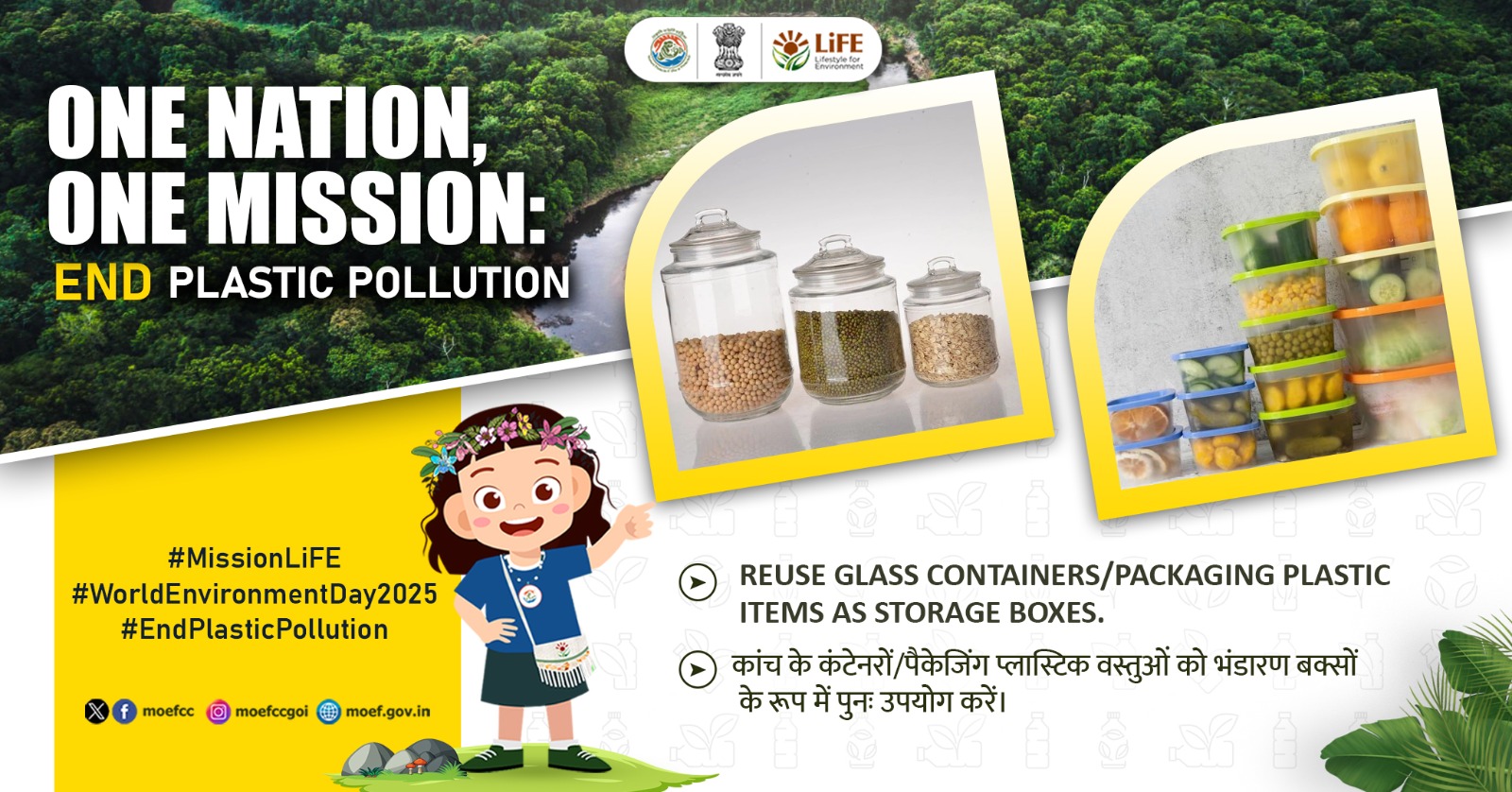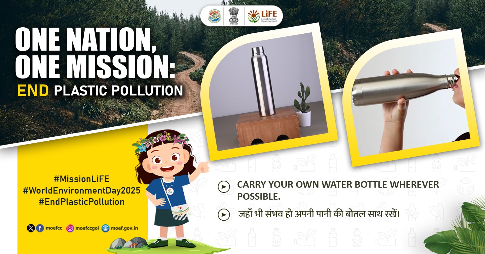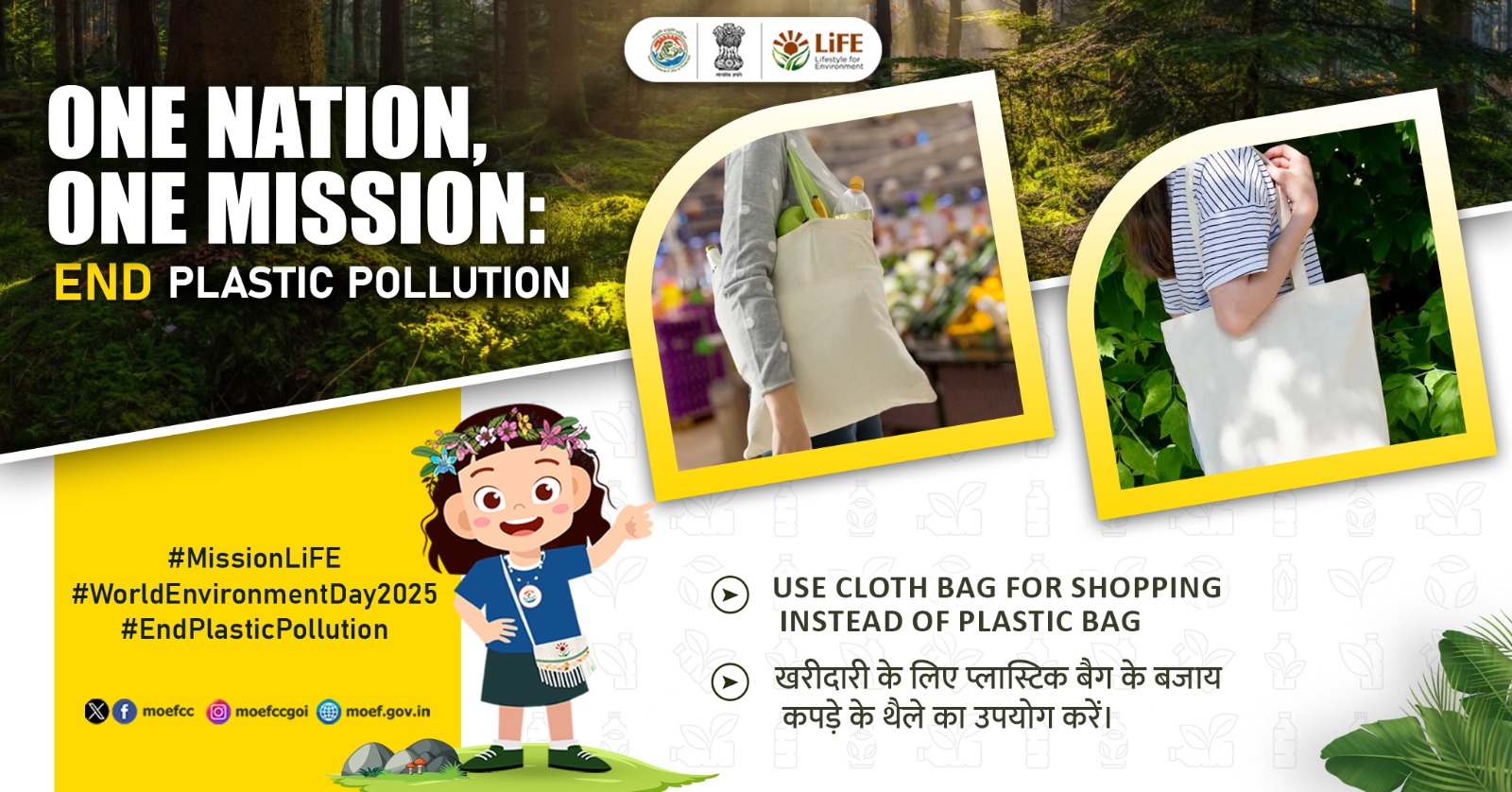 One Nation, One Mission: #EndPlasticPollution! Step up for clean-up drives in your city and water bodies. Together, we can restore nature. #MissionLiFE #WorldEnvironmentDay2025