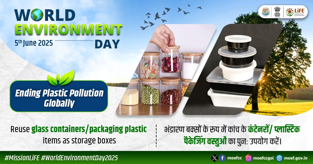 Switch to glass jars or repurpose durable plastic containers for storage. It’s a smart way to reduce waste and support a cleaner, greener planet. #MissionLiFE #WorldEnvironmentDay2025 #EndPlasticPollution