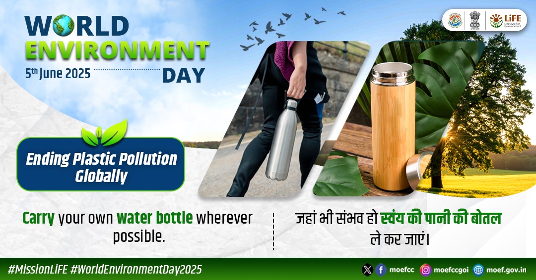 Make it a habit to carry your own reusable water bottle. It helps cut down single-use plastic and keeps you hydrated, responsibly. #MissionLiFE #WorldEnvironmentDay2025 #EndPlasticPollution