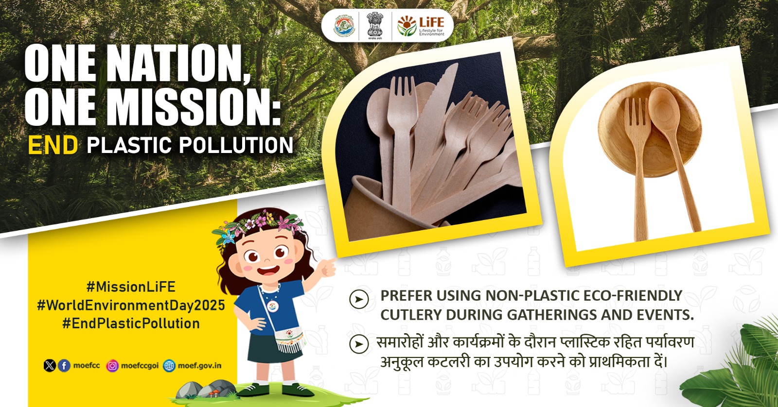 Say no to single-use plastic cutlery during gatherings and events. Opt for non plastic eco-friendly alternatives and be part of the solution, not the pollution. #MissionLiFE #WorldEnvironmentDay2025 #EndPlasticPollution